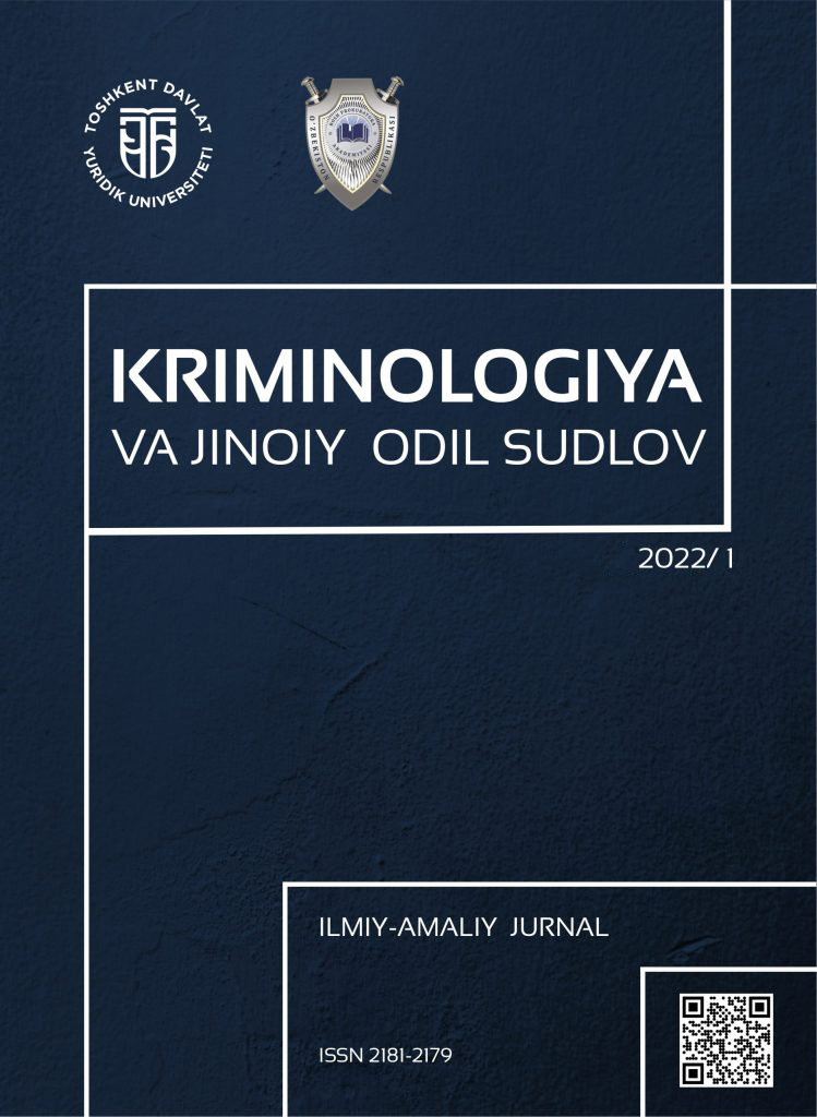 2021 / 1–2-son – KRIMINOLOGIYA VA JINOIY ODIL SUDLOV